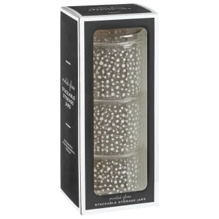 B&M Printed Glass Stackable Storage Jars 3pc - White