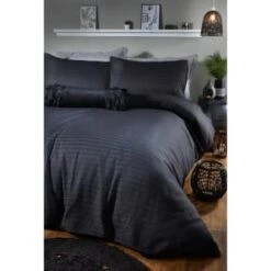 Simply Everyday Reversible Double Duvet Set With Pipe – Grey & Charcoal